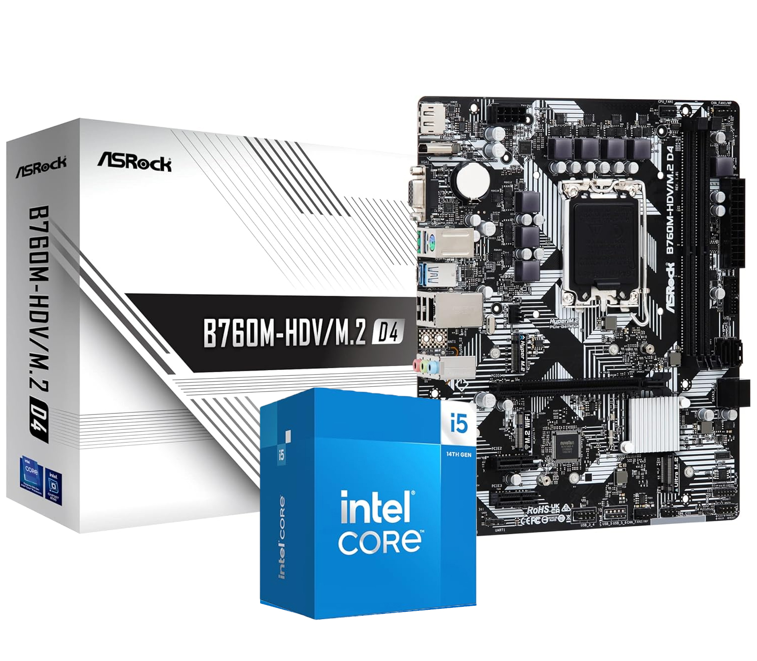 Kit Placa Mãe ASRock B760M-HDV/M.2 D4, Chipset B760, Intel LGA 1700, mATX, DDR4 + Intel Core i5 14400